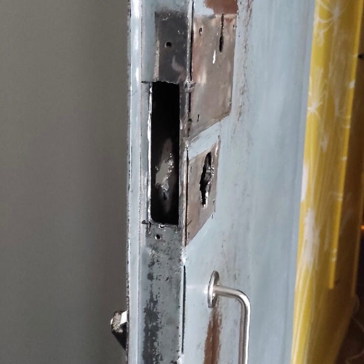 Обратились к нам с просьбой открыть навесной замок, который перестал работать. Самостоятельные попытки спилить его не увенчались успехом. Просьбу выполнили.